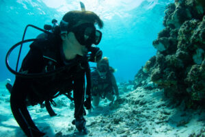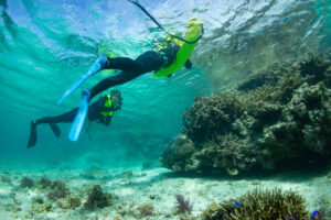 残念ですが、私たちの島にも多くのごみが漂着します。 ごみはサンゴに絡みつき、美しい水中洞窟に溜まっていきます。 手付かずの珊瑚礁が魅力の伊良部島と下地島。 私たちは定期的に海中清掃を実施しています。